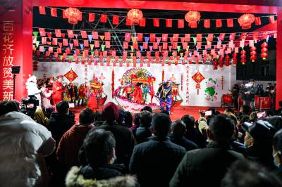 正月十五晚,嘉鱼县陆溪镇虎山社区一场吃美食看表演猜灯谜的盛大元宵晚会正在湖北卫视萌虎闹“荆”元宵直播。