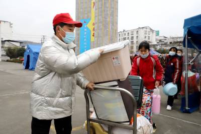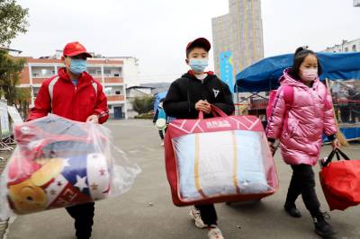 “同学,新年好!让我们给你帮忙搬运行李吧!”2月17日上午,竹山县麻家渡镇小学新学期开学啦,1200余名学生在家长护送下背着书包、带着被子行李错时错锋来到学校门口,迎来一群头戴小红帽的志愿者热情的接待。