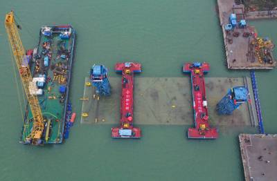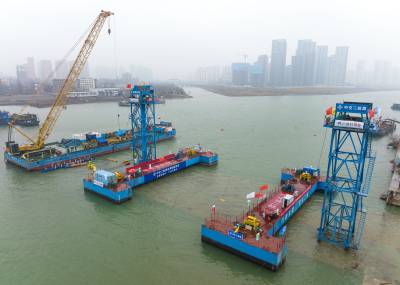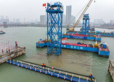 2月17日,湖北省襄阳市东西轴线(襄江大道)鱼梁洲过江隧道最后一节沉管安装成功。至此,该过江隧道的10节沉管全部安装完毕。此次安装的第10节沉管全长91.5米,重约2.4万吨。中交二航局通过自主研发的沉管施工全过程信息监控系统监测调控,实时掌握沉管下沉过程中的姿态,将沉管成功下沉至汉江水下23米处,完美实现了沉管管节对接接头偏移不超过20毫米,轴线偏差不超过50毫米的目标。