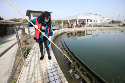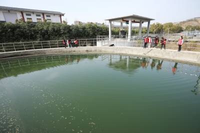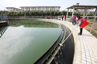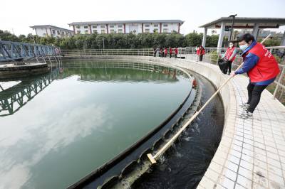 2022年3月1日,十堰市房县水利和湖泊局文明实践志愿者在城区晓阳污水处理厂打捞沉淀池青苔、飘落的枯叶。房县将综合治理河流黑臭水体纳入政绩考核体系,从源头控制工业、生活污水,护一河清流永续。目前,全县依法关闭“五小”污染企业18家,建成乡镇生活污水治理项目20个,城乡污水治理实现全覆盖,日排放到河流的近5万吨城乡生活污水通过处理,稳定达到国家一级A标准,被省政府评选表彰为“乡镇生活污水治理工作成效突出的县(市、区)”,工作列入全省经典案例向全省推介。