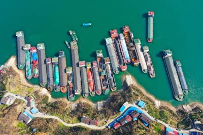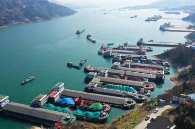 2022年3月2日是三峡大坝南线船闸检修过闸船舶下行的日子,三峡库区湖北省宜昌市秭归县茅坪镇松树坳村沿江停靠的待闸船舶总量明显减少,交通部门通过远程调度待闸、有序分流了在上游茅坪水域,下游宜昌市猇亭水域待闸船舶扎堆停靠,影响通行的难题。