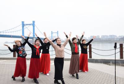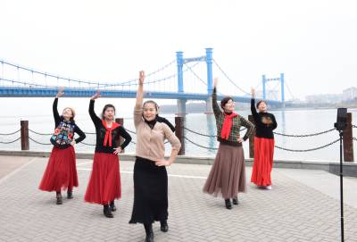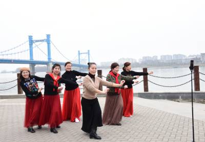 在阳光明媚的春日里,樊城区老年大学舞蹈班的学员们在滨江公园载歌载舞,展示飒爽英姿。