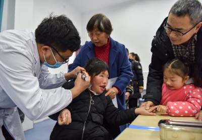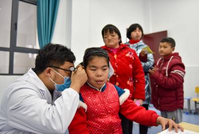 当日是第23次全国“爱耳日”,湖北省秭归县人民医院的医务人员走进县特殊教育学校,免费为孩子们开展听力、视力筛查,普及爱耳护耳知识,帮助孩子们养成爱护耳朵的健康习惯。(视界网 王家满摄)