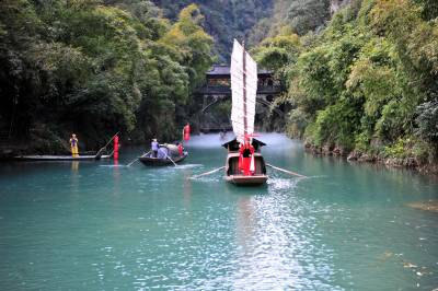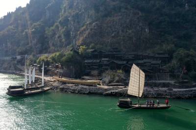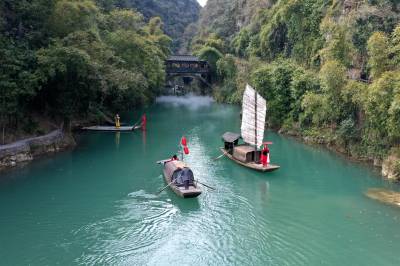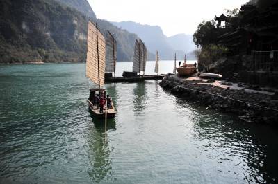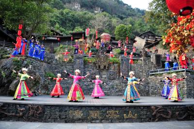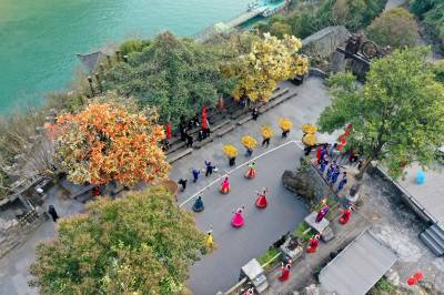 2022年3月2日,随着气温回升,位于长江“两坝一峡”(三峡大坝、葛洲坝和西陵峡)间的宜昌市夷陵区三峡人家风景区春意渐浓,景区内渔家劳作、土家婚俗、船工号子和山寨风情大型实景歌舞等民俗文艺节目展演,让游客切身感受到古老而纯朴的峡江风情。