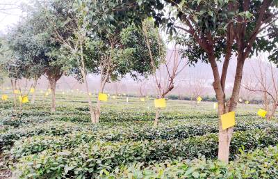 又到一年茶飘香。在竹山县竹坪乡,漫山遍野的茶园清香四溢,点缀其间的“小黄板”疏密有致,分外醒目。 茶园“小黄板”,是利用昆虫对于黄色敏感趋向性而研发的一种黄色粘虫板,具有引诱力强、粘捕率高、无毒、无害、无污染等特点。 该乡做好茶产业发展助推乡村振兴的同时,以“小黄板”撬动茶园绿色防控,提升了茶叶品质,实现了茶农节本增收,也有效保护了生态环境。(视界网 张云朝 王喜苹摄)