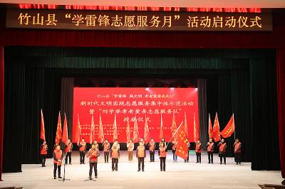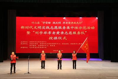 (视界网 邱亮 摄)为进一步发挥全国孝老爱亲道德模范刘学举示范引领作用,传承孝老爱亲传统美德,推动我县“学雷锋志愿服务月”活动有序开展,竹山县县委县政府以刘学举孝老爱亲为品牌,以全国“孝老爱亲道德模范”刘学举的名字命名的竹山县志愿服务总队刘学举孝老爱亲支队和17支乡镇分队正式成立。3月4日上午,竹山县志愿服务总队“刘学举孝老爱亲”支队授旗仪式在秦巴文化艺术中心剧场举行。
