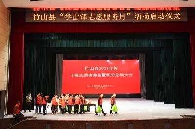 活动现场,表彰了158名2021年度十星志愿者,并集中进行了积分兑换仪式活动。