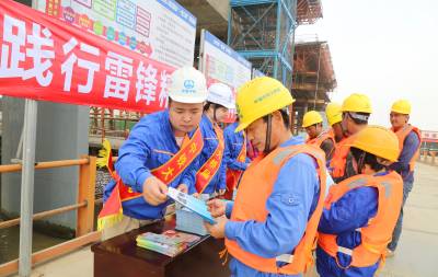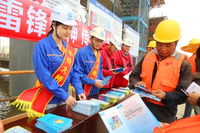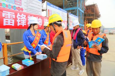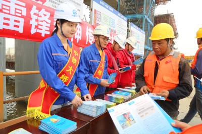 本报珠海讯(孟庆虎 胡馨月)3月5日,是学雷锋纪念日,中铁大桥局珠机城际金海大桥项目部团工委在施工现场开展安全生产宣传教育活动,为现场工人送去安全学习读本,以此来“践行雷锋精神 传递安全知识”。“这个学雷锋送安全活动好,安全关乎大家的幸福,送来的施工安全手册和疫情防控知识,就是送给我们的最好礼物”。来自河南南阳的农民工王德罗说。