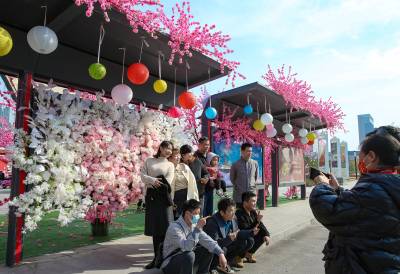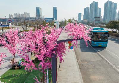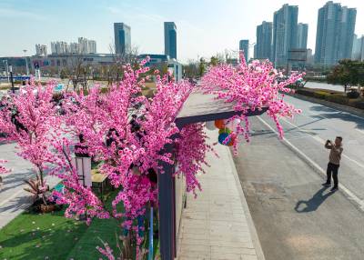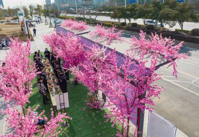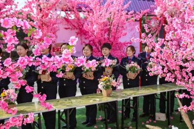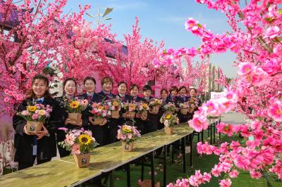 湖北十堰:书香满园春意浓 樱满枝头花正好 校园为民众开放赏花
