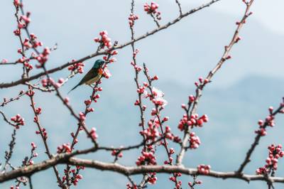 郧阳:小鸟戏花迎春分