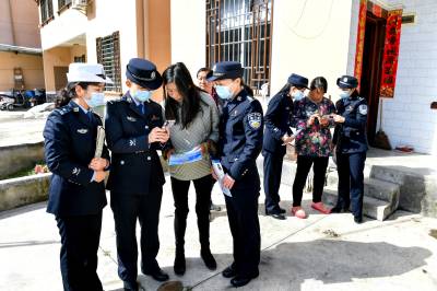 2022年3月8日“三八”妇女节,保康县公安局组织女警反诈普法宣传队来到该县黄堡镇寨湾村,开展“喜迎二十大•巾帼她力量”反诈普法大走访大宣传活动,女警们在欢度自己节日的同时,将反诈普法知识送进百姓家。