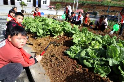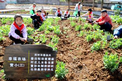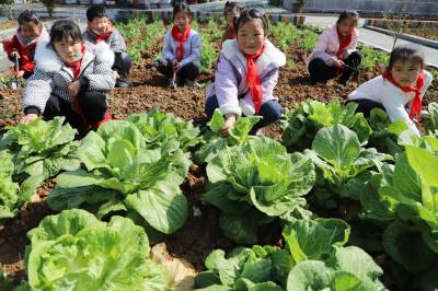 3月8日,竹山县麻家渡镇营盘河小学“幸福农场”里,孩子们在老师带领下参与耕地、播种、除草、浇水、施肥、快乐采摘中体验劳动带来的快乐。