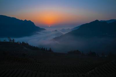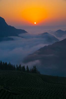 > 2022年3月8日,恩施市屯堡乡花枝山村生态茶园的云海日出蔚为壮观。
