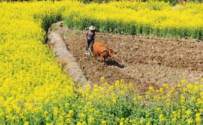 3月9日,安陆市王义贞镇三冲村农民正在翻耕秧田。安陆是全国粮食主产区。眼下,气温回升,春暖花开,该市逾万名农民投入到春耕、春管等各项农事活动中。