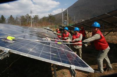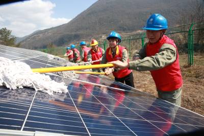 为定期清理光伏板表面污垢,做好光伏电站的运维、保养,让光伏电站发挥效益,以实际行动推进绿色发展、助力乡村振兴,该供电所组织共产党员服务队会同驻村尖刀班定期对光伏发电站进行“体检”,力促建成投运的光伏电站发挥最大效益。