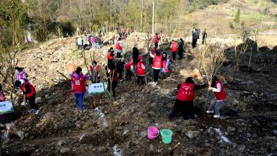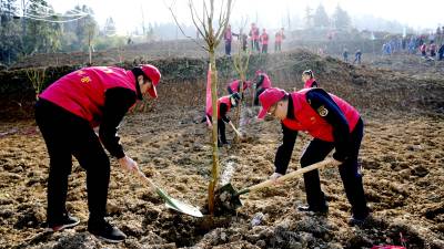 据悉:在植树节即将到来之际,宣恩县为加快乡村振兴建设步伐,精细打造美丽乡村绿化环境,用实际践行绿水青山就是金山银山理念。活动当天,来自珠山镇政府、县城市管理执法局、县林业局、县妇联、县融媒体中心、县检察院等10余个县直机关单位200余名党员干部职工在和平村铁铲坡义务植上桃树、紫薇等极具乡村旅游观赏价值的绿化树种500余棵。