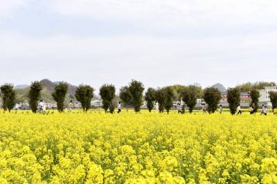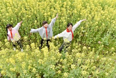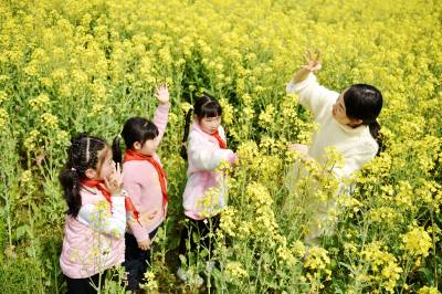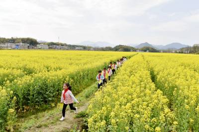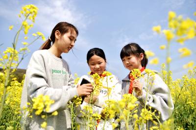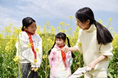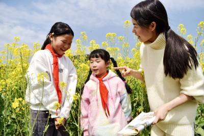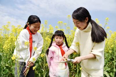 2022年3月10日,湖北省咸宁市通城县塘湖镇油菜花基地,夏家完小老师给学生讲解油菜花生长知识。 当天,通城县塘湖镇夏家完小把课堂搬进田间地头,加强劳动教育,给学讲解油菜花生长知识,熟悉农事,让孩子们切身感受春天的魅力,畅享美好春光。
