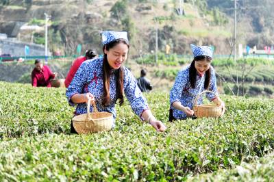 近年来,宜昌夷陵区通过建设三峡茶谷,打造三峡茶旅小镇,助推茶旅融合发展。坚持实施生态茶园和洁净化生产等集成技术,形成了“低山早市茶、高山优质茶”持续采摘的多元化布局,全区以“一个产业+企业引领+骨干支撑”为目标,培育出省级以上农业产业化重点龙头企业17家、省级以上示范合作社23家。目前,该区发展茶叶面积23.3万亩,年产量3.54万吨,年产值17.6亿元,共有10万茶农在茶产业中增收致富。(视界网 张国荣 摄)