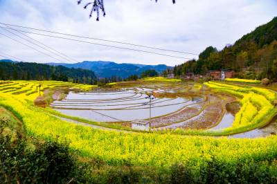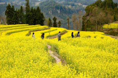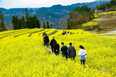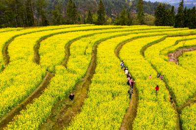最近几天,长坪油菜花盛开,把村庄田园打扮得如同仙境一般。前往参观山花的游人络绎不绝,拍视频、留影、现场直播、应有尽有。时候都赞美说:真是美爆了!