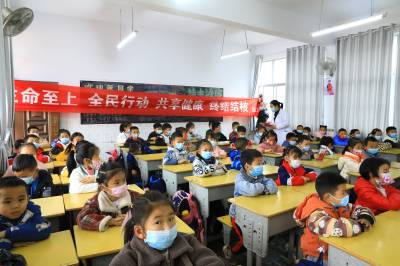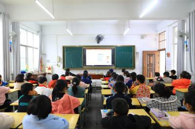 3月24日下午,巴东县沿渡河镇民族中心小学健康知识开讲并直播,师生们正在听讲。