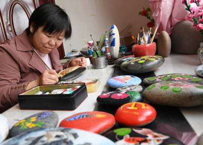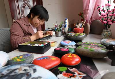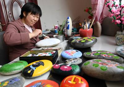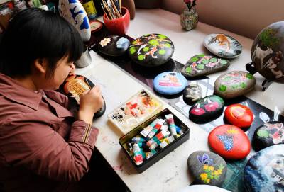 目前,她已经画了200多件石头作品,并且尝试在网上销售。