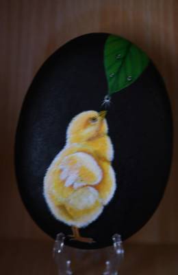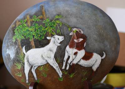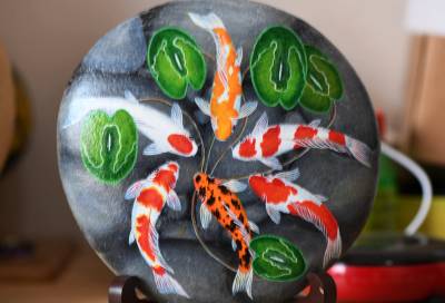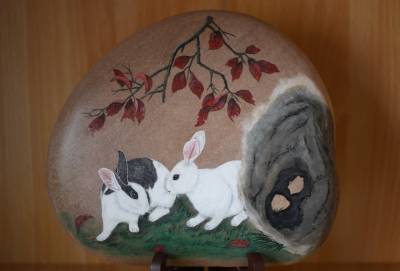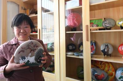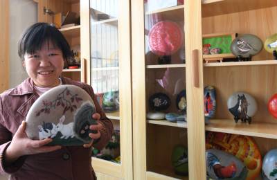 去年4月的一天,有一次她在网络上偶然看到有人在石头上作画,这勾起了她小时候想当画家的梦想。
