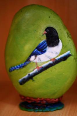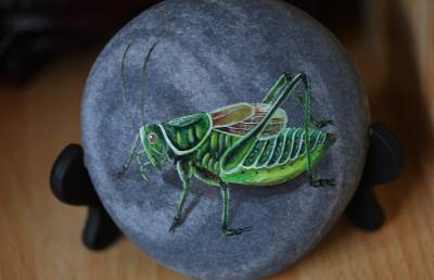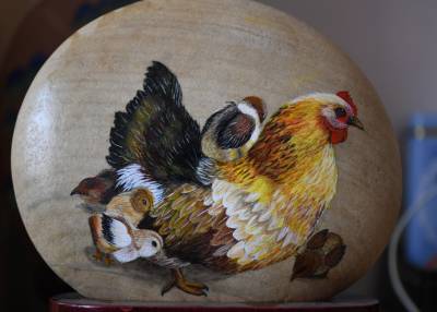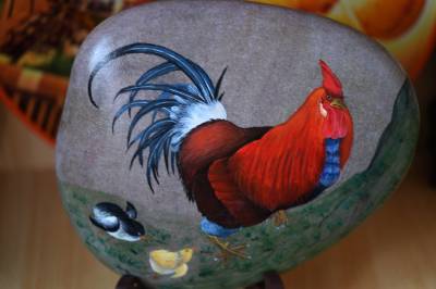 于是,农闲时就在门前的重溪河里捡拾光滑的石头,也尝试着在石头上画画。没想到,这一尝试就停不下来,一有时间就画,越画越有感觉,越画越上瘾,而且画什么像什么。