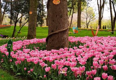 首页 > 风光湖北 > 郁金香争妍樱花园