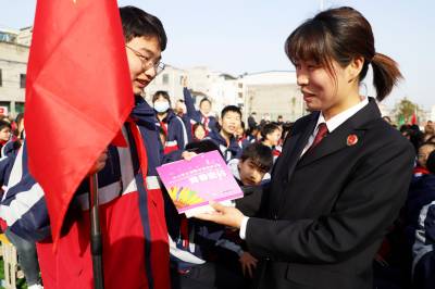 活动现场,县检察院工作人员向积极答疑互动的学生送上精心准备的法治大礼包,在轻松愉悦的气氛中教育学生文明上网、不造谣不传谣,做一个明是非、知荣辱、充满正能量的当代中学生。(视界网 刘东 武世华 摄)