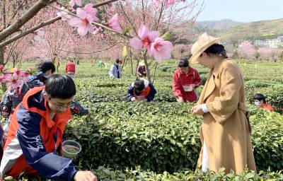 3月29日,竹山县竹坪中学七八年级学生在老师的带领下,来到该乡陈家河茶园,开展了“亲近自然拥抱春天陶冶情操”为主题的采茶劳动实践活动,培养学生热爱劳动的品质,陶冶学生情操。(视界网 张云朝 周鹏摄)