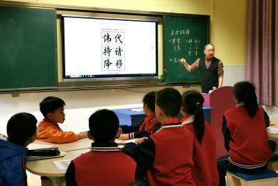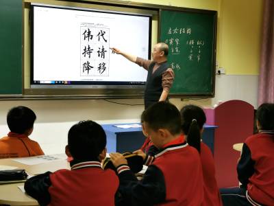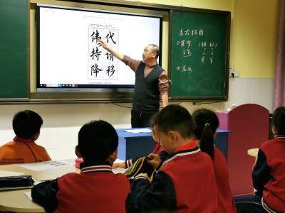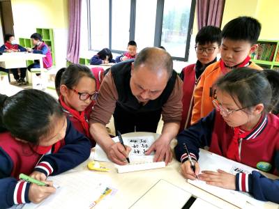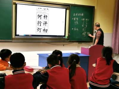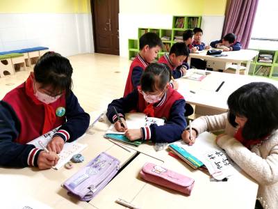 3月31日下午,巴东县官渡口镇中心小学课后延时服务时间里,书法兴趣小组的学生在老师的指导下学习书法知识——汉字的间架结构。