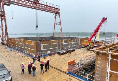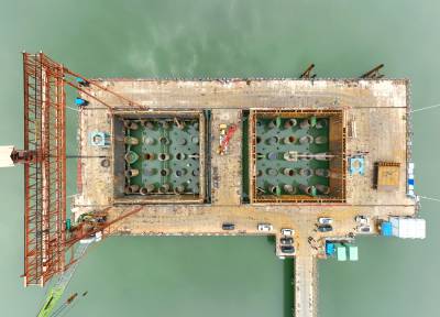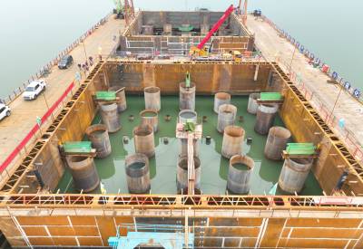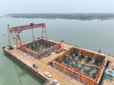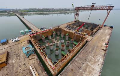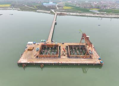 襄阳汉江牛首特大桥双壁钢围堰成功下水(客户端采稿)