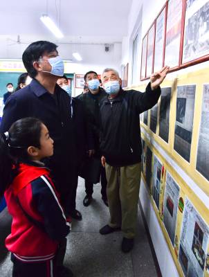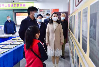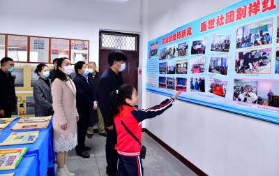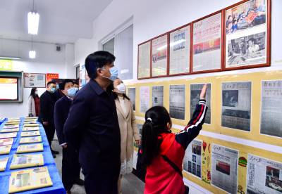 十堰市关工委主任梁吉祥,秘书长李耀昌,共青团十堰市委副书记王艺丹,汉江师范学院团委副书记毛晶玥,以及张湾区关工委丶教育局等嘉宾参观了作品展,并就“集报、剪报进校园”十年来活动情况及后续发展方向进行了深入探讨。