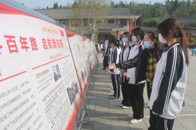4月1日,丹江口市汉江科技学校40名学生来到市革命烈士陵园,进行清明扫墓,缅怀先烈。图为学生在烈士陵园观看革命故事展板。视界网钱芹 摄 通联:丹江口市汉江科技学校办公室:钱芹 手机:13477990812