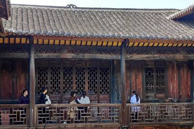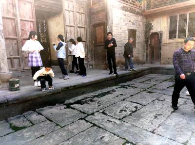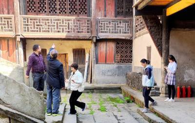 周先生一家人将高家花屋里里外外看了一遍又一遍,不时用手机拍照,生怕漏掉了一处美景。还登上戏楼,感悟一番古人登台唱戏的滋味。