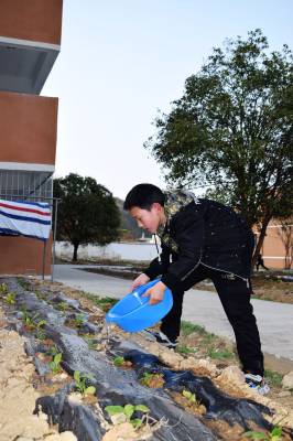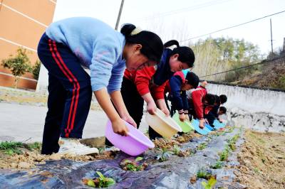 4月7日,郧阳区青山镇九年一贯制学校劳动基地,学生正在给茶树苗浇水,感受劳动之美,体验劳动乐趣。
