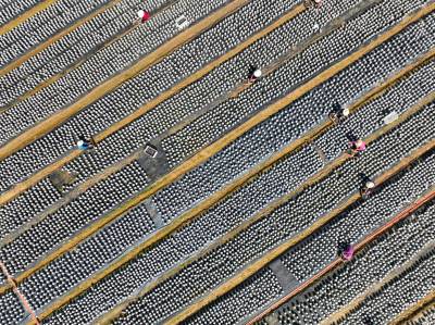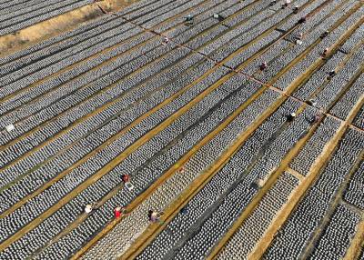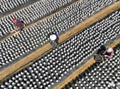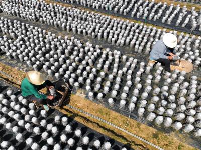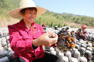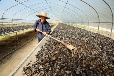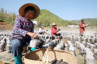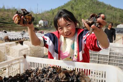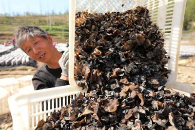 2022年4月8日,十堰市房县土城镇通省馆村村民在食用菌产业基地采收黑木耳。房县实施黑木耳深孔、密植、仿生态“夏栽”技术,增加黑木耳产量,提高产品品质,跃升中国著名的黑木耳生产基地县、驰名中外的“木耳之乡”。如今,当地黑木耳入选首批中欧地理标志协定保护名录,品牌价值达到5.01亿元,“燕牌”黑木耳销往日本、东南亚以及法国、联邦德国等海外“五大洲”30多个国家和地区,年均实现产值7亿元,创汇9500万美元,黑木耳成为乡村振兴、农民增收的支柱产业。