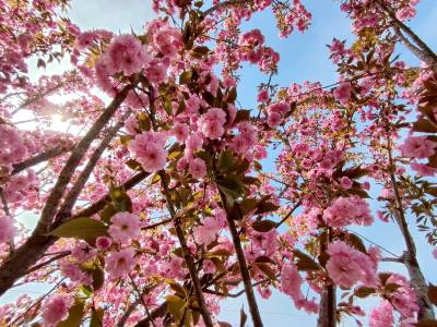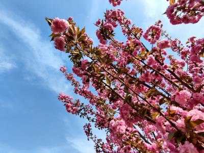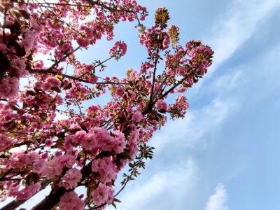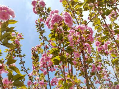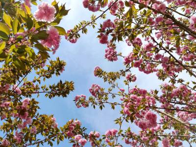 连日来,竹山县竹坪乡茶园里的樱花绽放,映红了茶园,映红了蓝天,映红了笑脸,吸引了众多游客拍照观光。(视界网 张云朝摄)