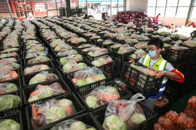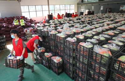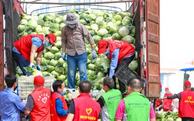 襄阳160吨爱心蔬菜支援上海(客户端采稿)