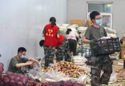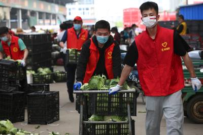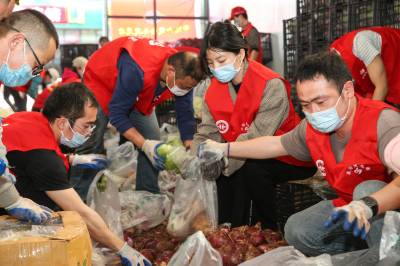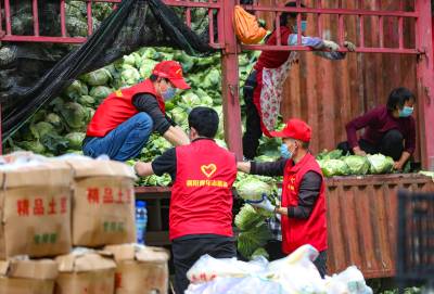 4月9日,经过襄阳市志愿者一天的分装,首批160吨爱心蔬菜装车从襄阳发往上海。