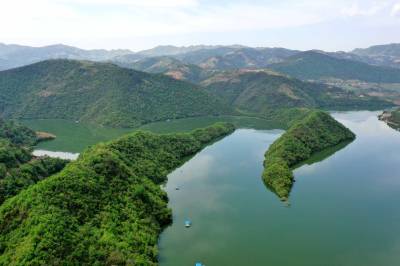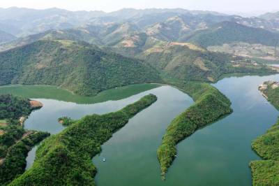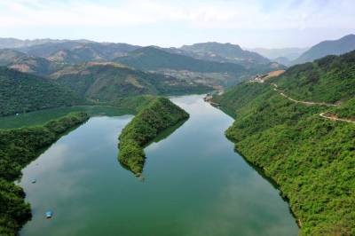 天子湖位于保康县寺坪镇西北部,流域范围包括大畈、七里扁、天子坪、台口等村,总库容2.69亿立方米,湖区水域8.25平方公里。天子湖由筑坝集水而成,水域湖岔纵横交错、水鸟相伴、游鱼相戏,主要航道曲折幽远,风光变化万千,良好的水域景观和原始的生态植被赋予了天子湖壮观迷人的自然韵味。