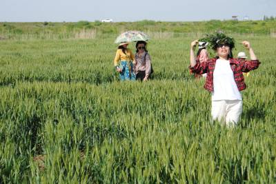 绿色河滩麦儿壮,城里人们打卡忙