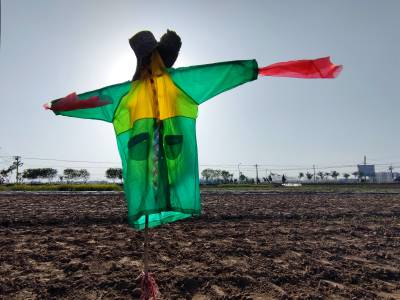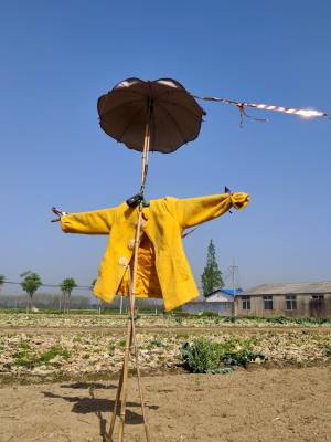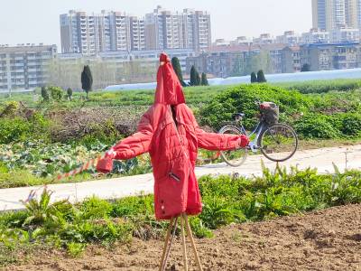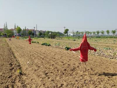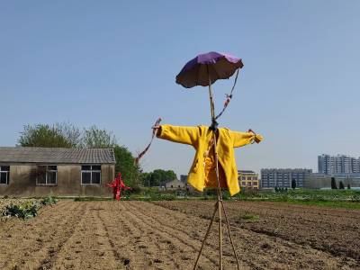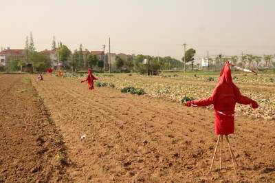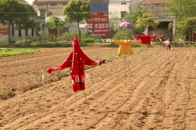 2022年4月8日,云梦县菜农播种毛豆种子的农田,一个个形态怪异、颇具个性的升级版“稻草人”,成为春天乡村一道别样风景。如今的“稻草人”不是真正意义上的稻草人了,它们已经升级成身穿华丽外衣的“稻草人”。如今的“稻草人”更加时尚,颇具魅力,成为乡村一道独特别样的风景。(陈保忠 吴冲 喻冬琴)