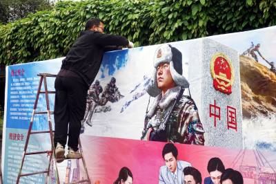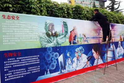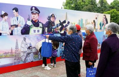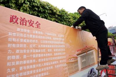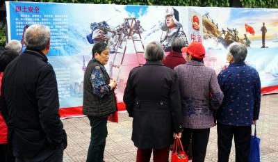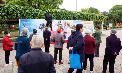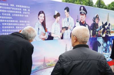 2022年4月14日,十堰市郧阳区郧阳文化广场上许多市民正在观看布展的第七个全民国家安全教育日主题展览。此次图文并茂的展览分为政治、军事、国土、经济、科技、网络、生物等内容。
