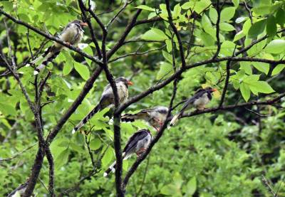 栖息于神农架常绿阔叶林、针阔叶混交林中。喜群栖,常成对或3-5只、10余只小群活动。主要以昆虫等动物性食物为食,也吃植物果实、农作物。有时还会凶悍地侵入其他鸟类的巢内,攻击残食幼雏和鸟卵。