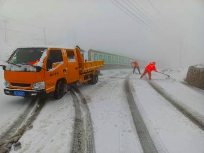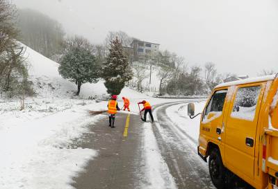 4月15日因气温遭遇过山车式的下跌,宜昌市长阳县海拔1500米以上的火烧坪乡青树包村降下了谷雨雪,公路部门正在除雪保畅。