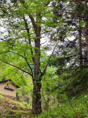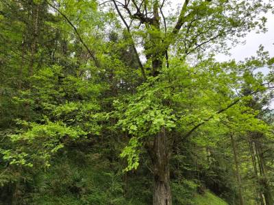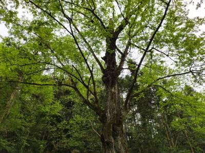 4月15日,笔者在竹山县竹坪乡金花村4组(原龙王垭村1组的杨家沟口),发现了一棵参天古树。生机勃勃,青春焕发。枝叶茂盛,遮天蔽日。树干笔直挺拔,欲与山峰试比高。