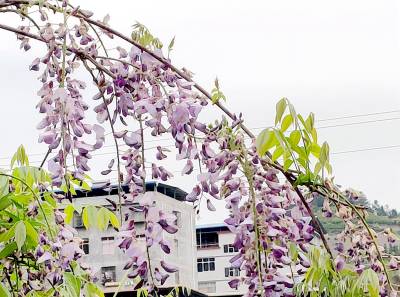 连日来,在竹山县竹坪乡的公路旁、悬崖边、大树上,山坡中,到处都有一串串粉嫩紫红的紫藤花,似风铃,似垂帘,娇艳美丽,令人陶醉。遍布的紫色宛若仙境,清雅脱俗,让山乡暮春平添了几多浪漫的气息。