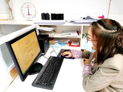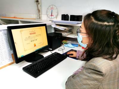 4月21日,巴东县官渡口镇中心小学教师查看“疫情防控知识大培训”线上课程学习合格证。