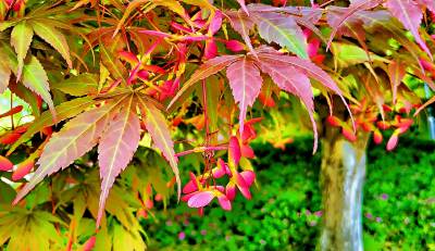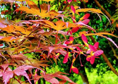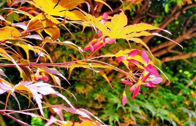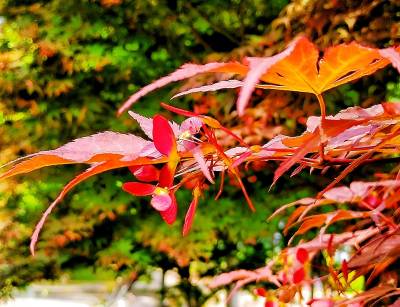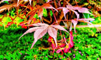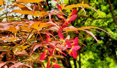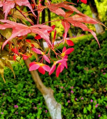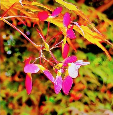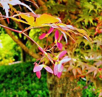 4月21日,我在金银湖国家湿地公园发现一棵枫树的叶子呈暗红色,每枝树叶的末端缀着两至四瓣黄里带红的叶片,确实好看,当即引来了几位游客观赏和拍照,有的说其是花,有的予以否定。带着这个疑问,我认真查阅了相关资料:“枫树为无患子目槭树科一些植物的泛称。乔木,可高达29米以上,冠幅可达16米。花期4到5月,果期9到10月。随着树龄增长,树冠逐渐敞开,呈圆形。枝条棕红色到棕色,有小孔,冬季枝条是黑棕色或灰色。枫叶色泽绚烂、形态别致优美,可制作书签、标本等。在秋天则变成火红色,落在地上时变成深红。”这其中提到“花期4到5月,果期9到10月”,说明眼前所见的便是枫树之花了。